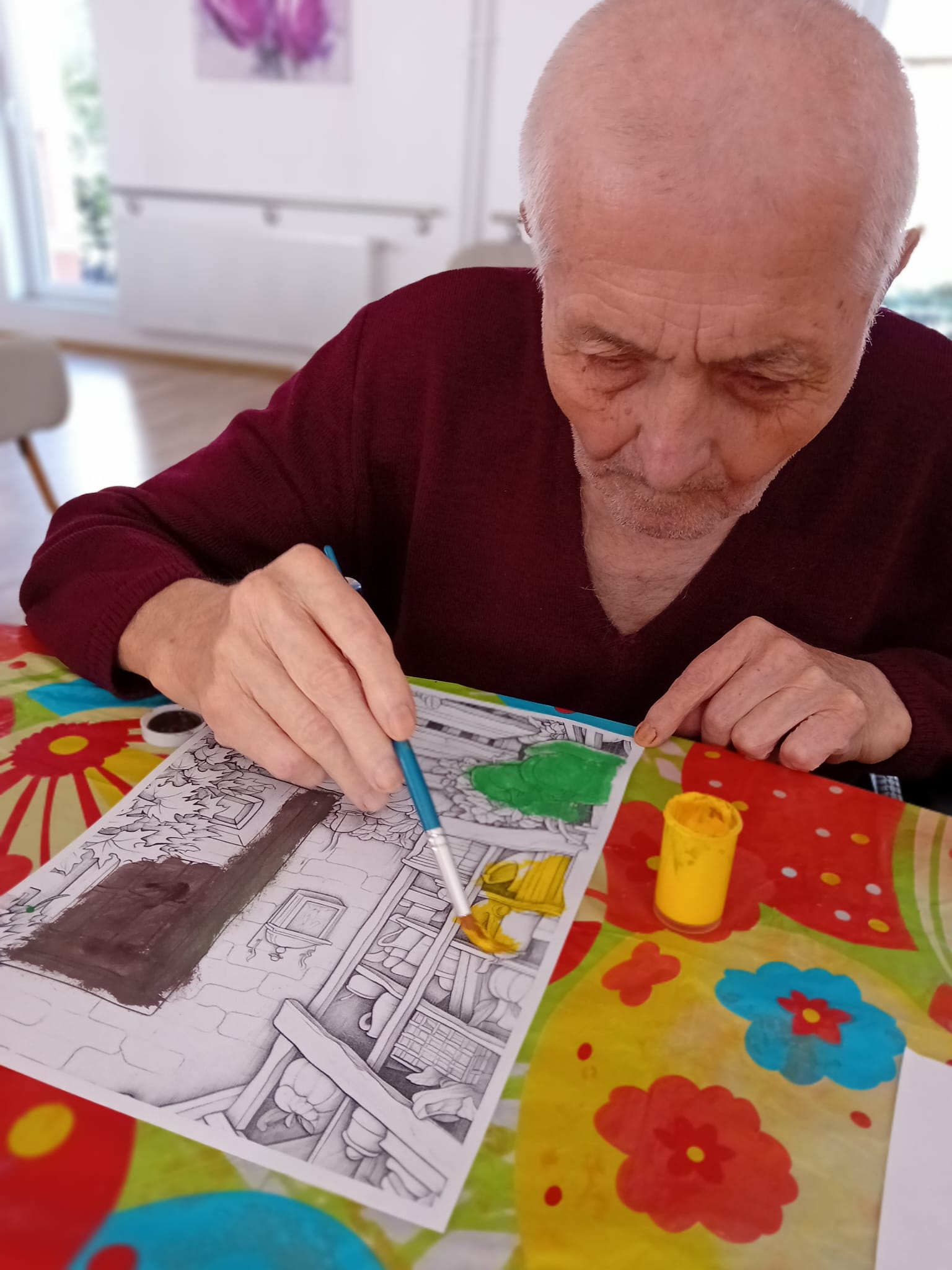 După cum spunea celebrul artist Vincent Van Gogh „Dacă auziți o voce din interiorul vostru care spune că nu puteți picta, atunci pictați și acea voce va fi redusă la tăcere”, astăzi, 23 septembrie a.c., rezidenții „Casei Frențiu” au avut parte de o activitate terapeutică prin artă, în cadrul căreia și-au exprimat emoțiile și au pictat folosind culori fascinante. Cu mult entuziasm, dar și atenție la detalii, seniorii au realizat lucrări minunate și unice, în timp ce s-au delectat cu piese muzicale scrise de Beethoven.