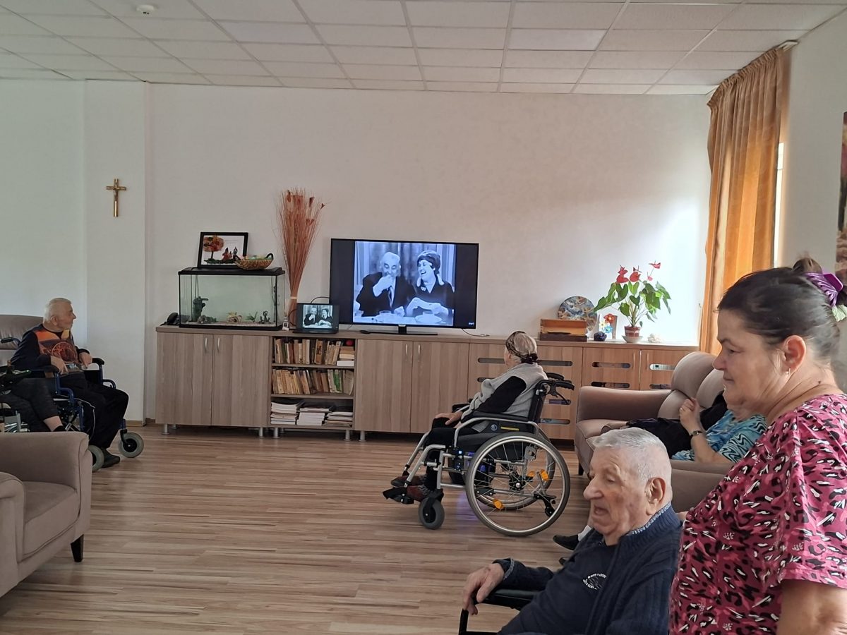 Seniorii Centrului rezidențial „Casa Frențiu” au avut parte de o activitate deosebită, desfășurată ieri, 23 octombrie a.c, înainte de masa de prânz, care le-a adus multă voie bună și emoție: vizionarea unor filme clasice cu actori legendari.