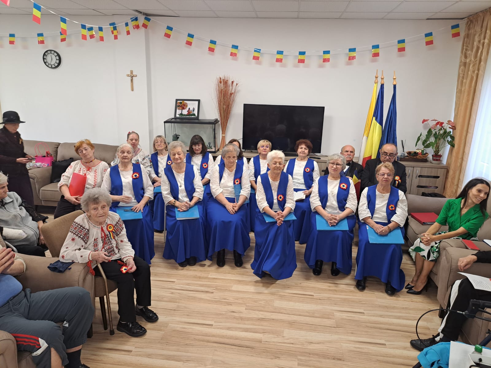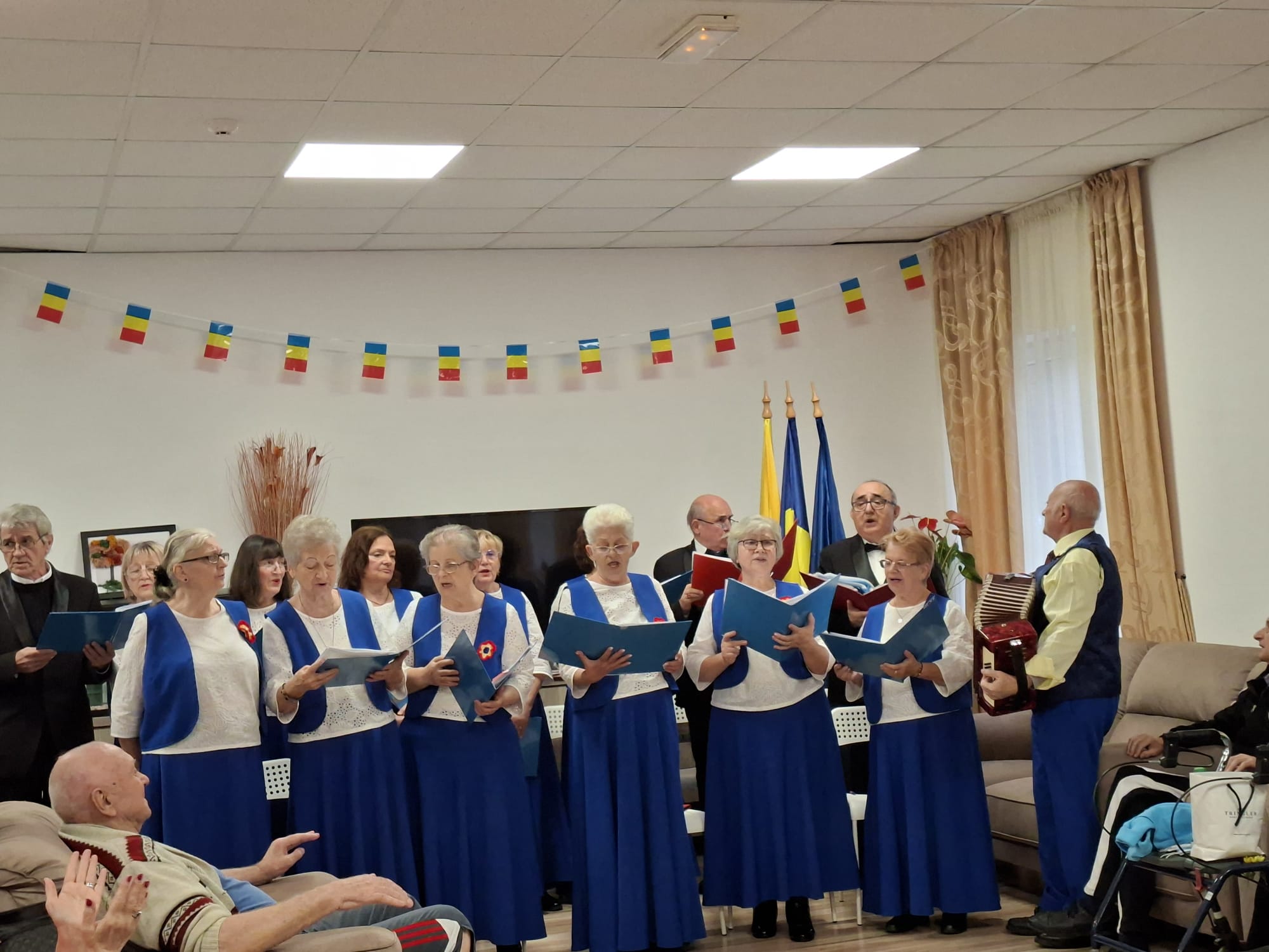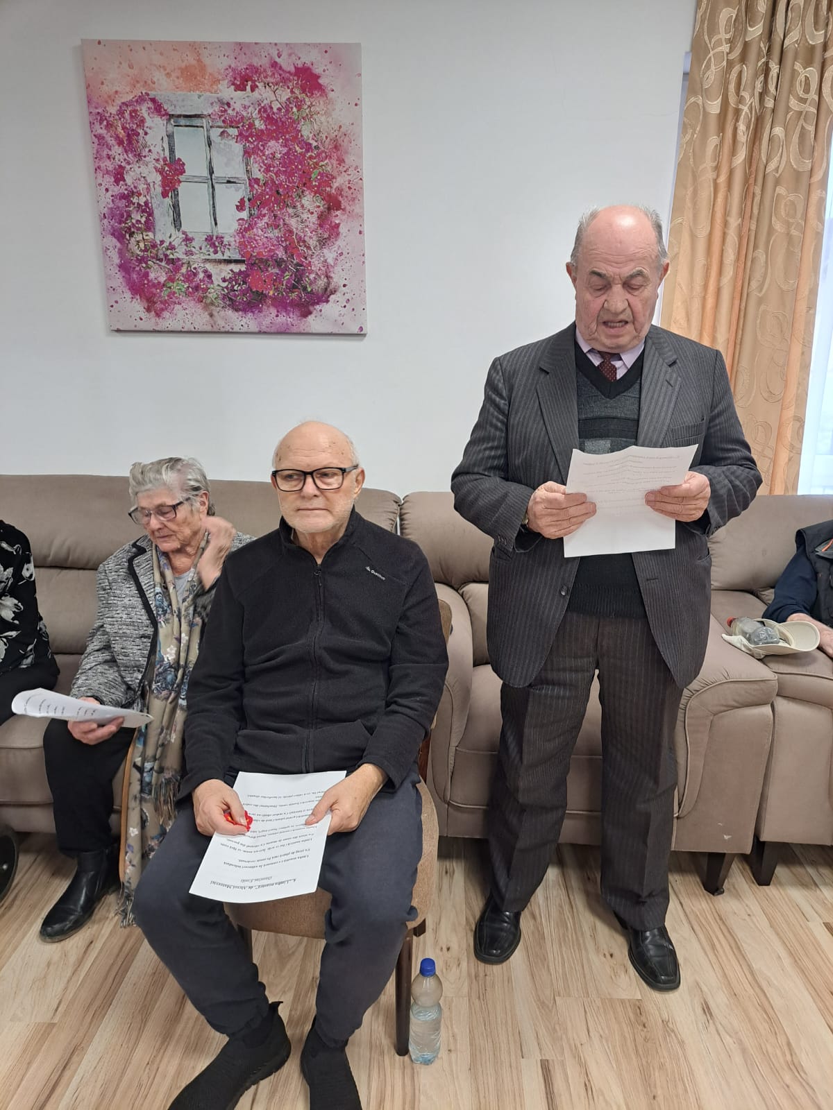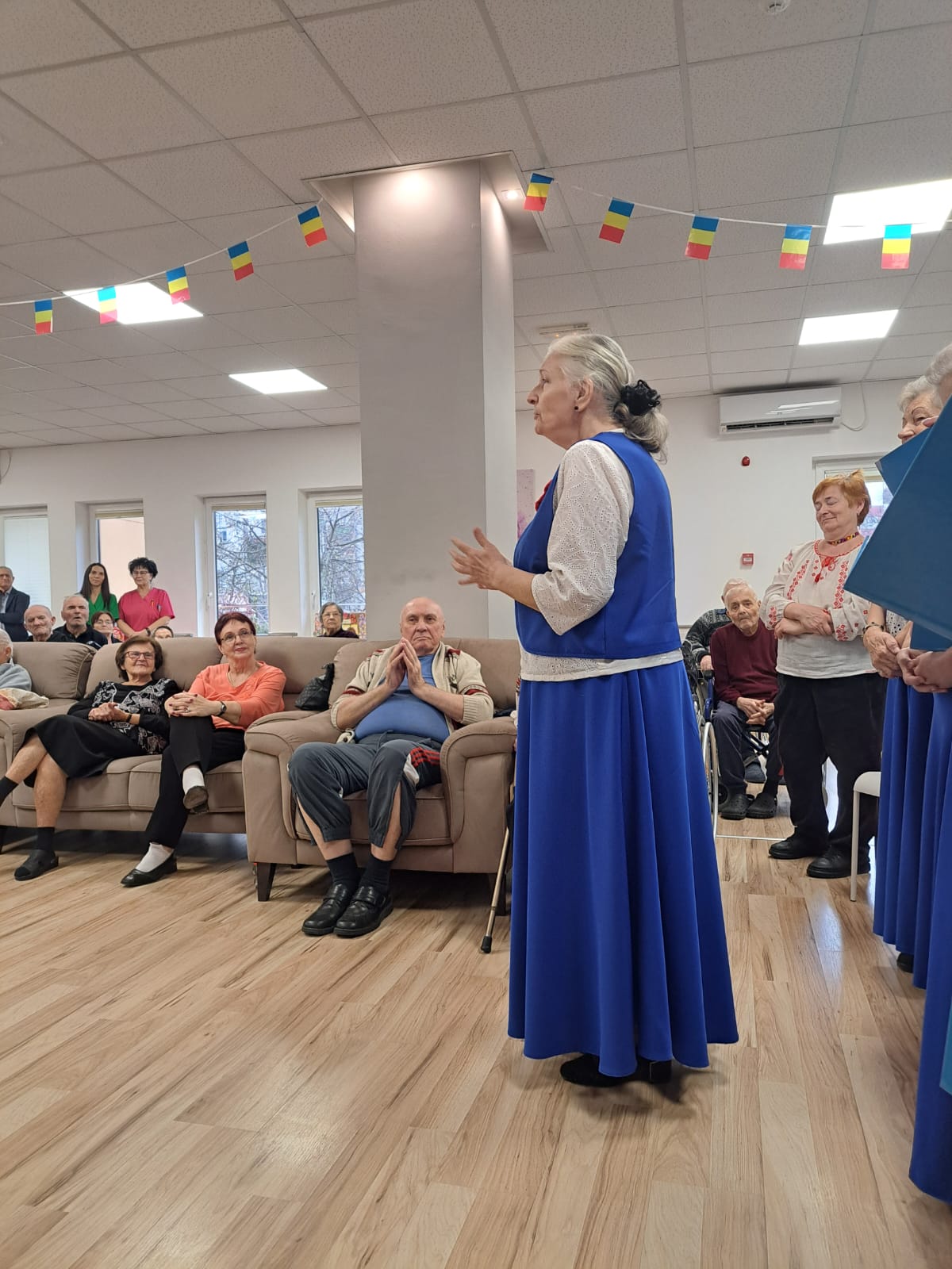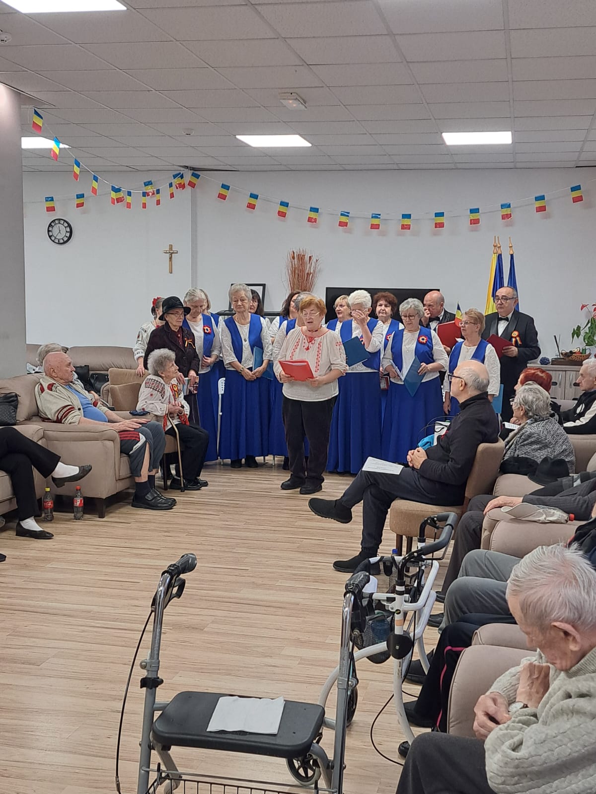 Întâlnirea a început solemn, cu Imnul României, cântat cu emoție de toți cei prezenți. A urmat programul pregătit de oaspeții noștri: cântece patriotice, poezii recitate cu pasiune și colinde ce au adus cu ele atmosfera sărbătorilor de iarnă.