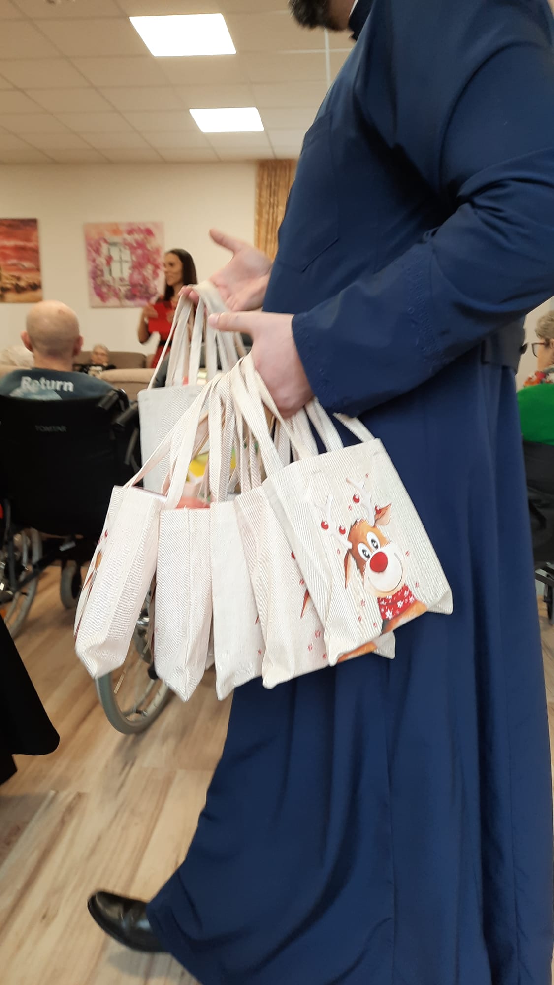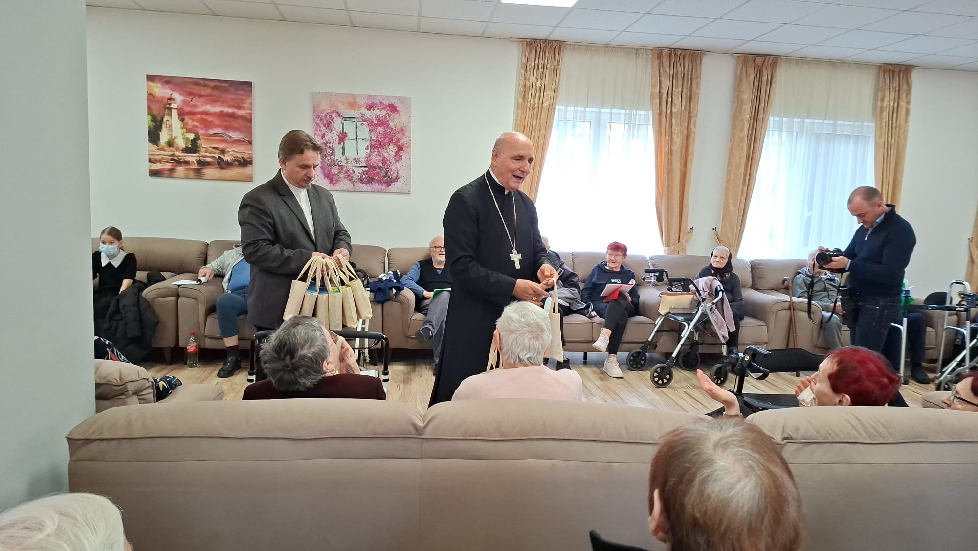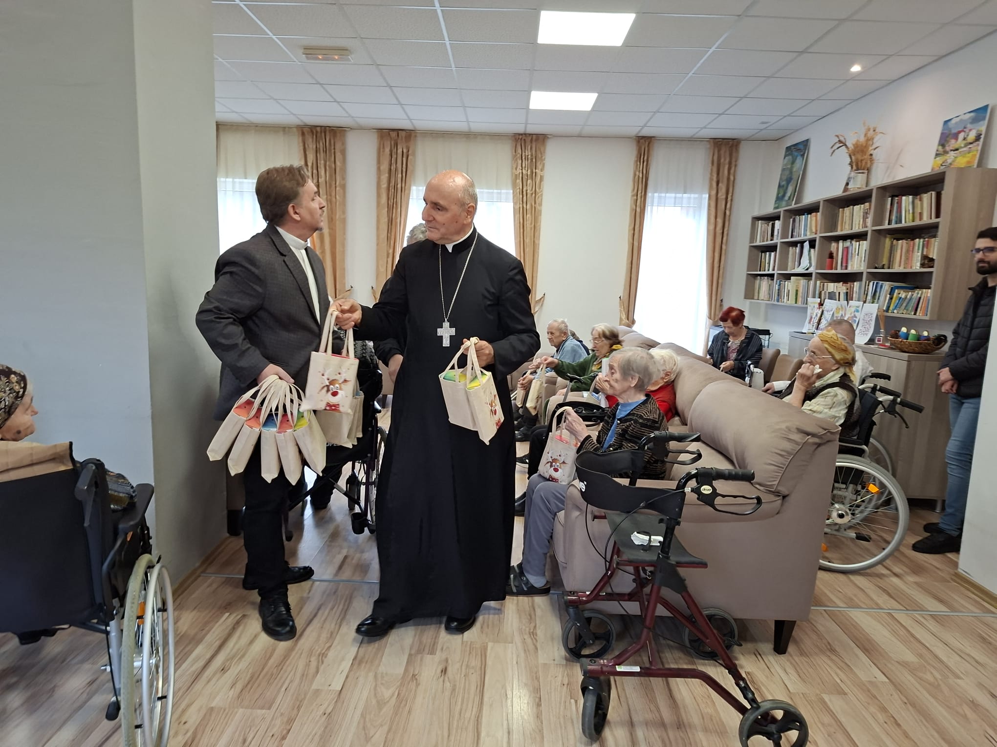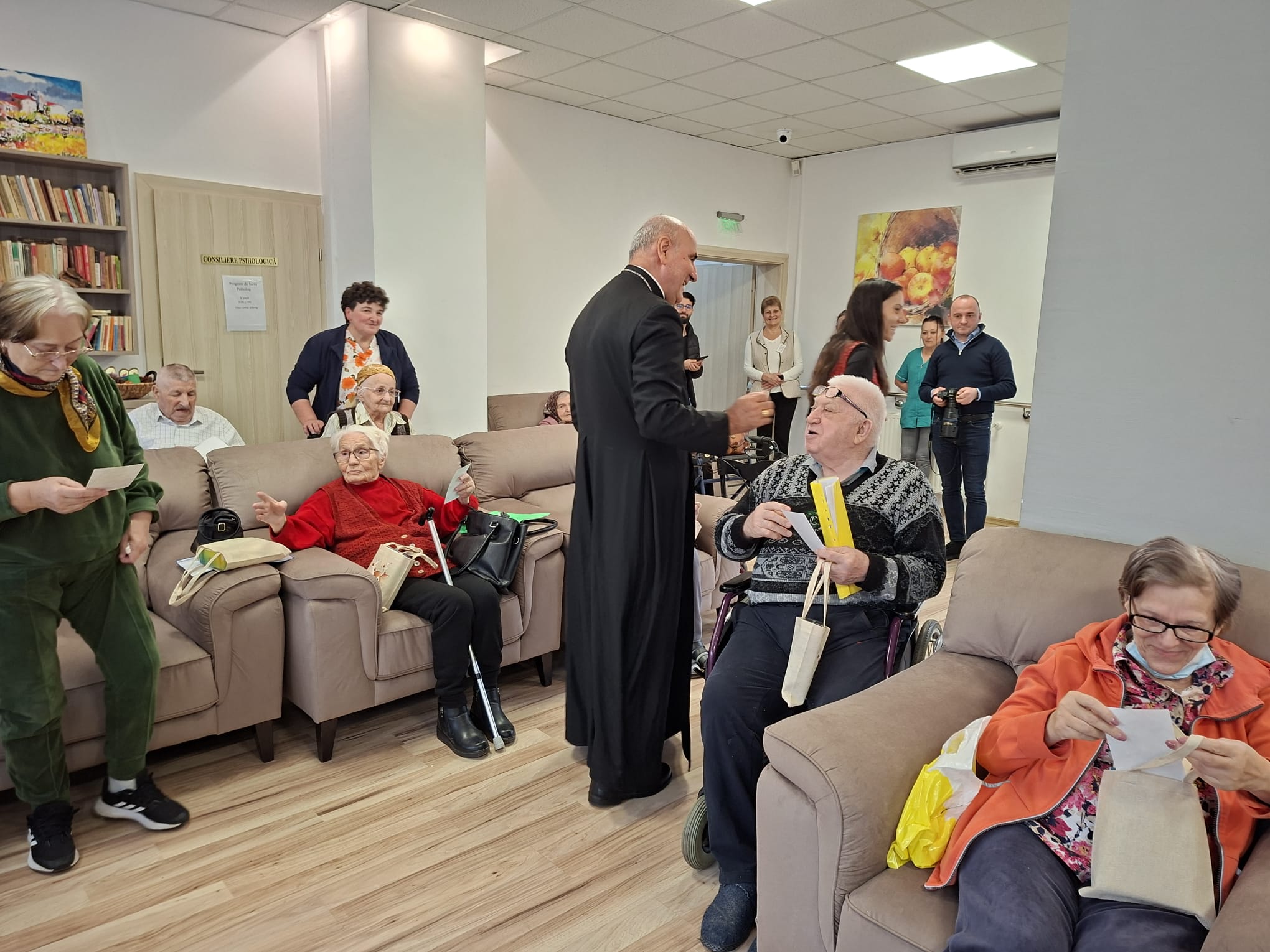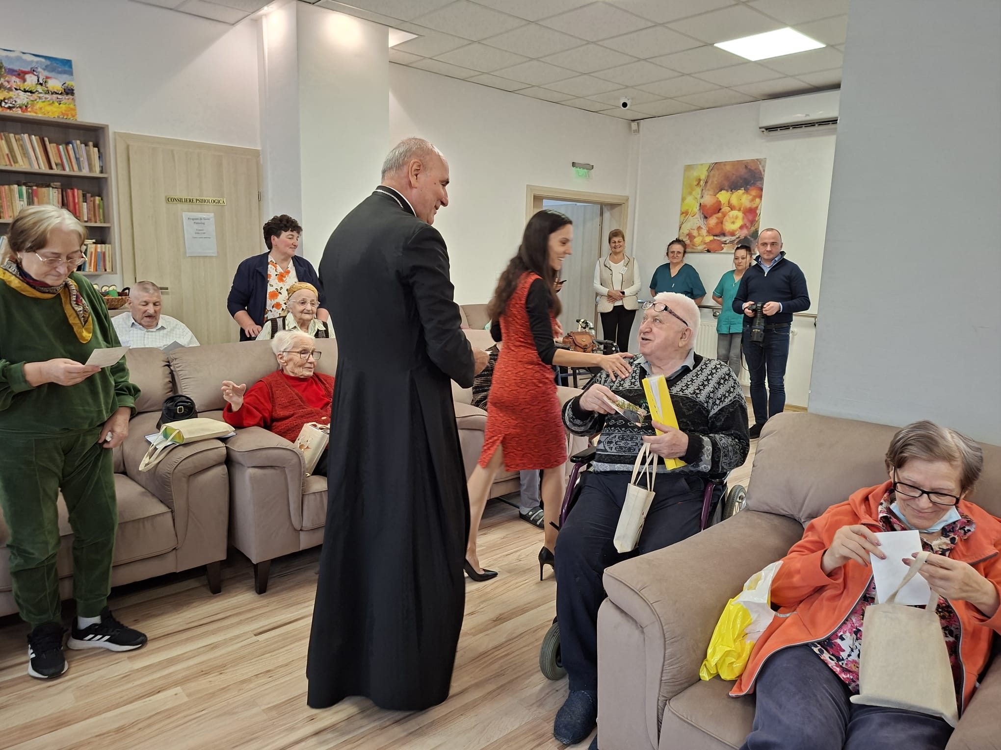 După colinde, Preasfinția Sa Virgil Bercea, împreună cu părintele Olimpiu Todorean, președintele Asociației Caritas Eparhial Oradea, și părintele capelan Valentin Ilea, a oferit rezidenților daruri, precum și fotografii realizate lângă bradul de Crăciun, ca amintire a timpului petrecut împreună. Gesturile simple au fost primite cu emoție și bucurie, întărind sentimentul de grijă și comuniune.