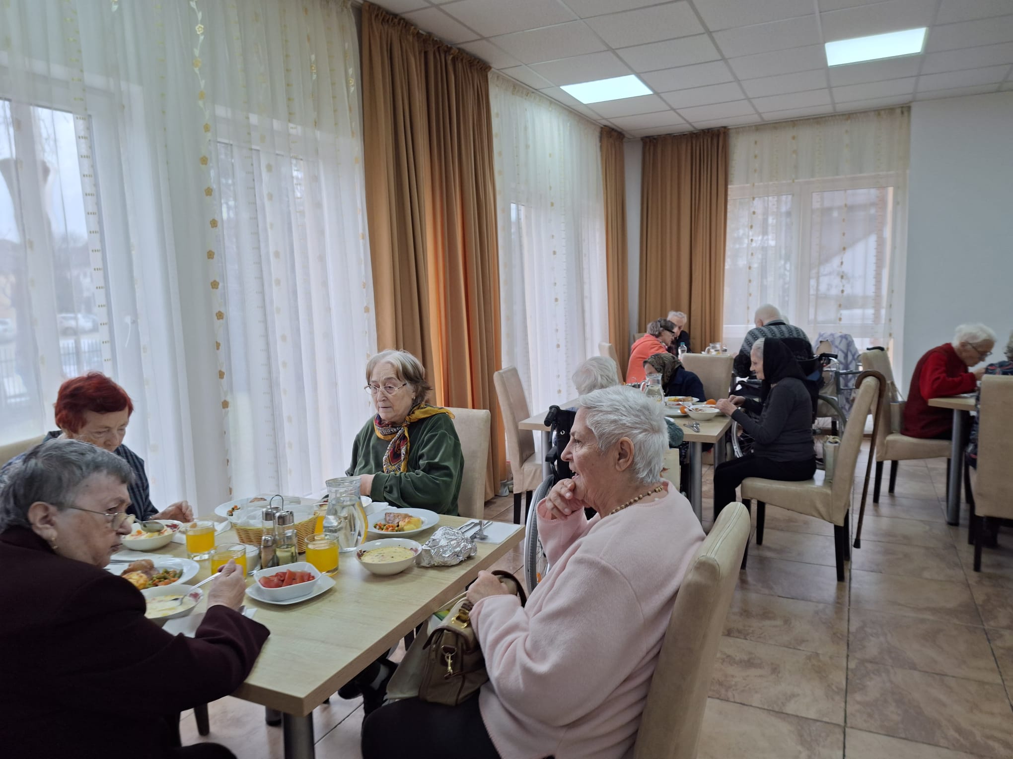 Întâlnirea a continuat cu masa de prânz, iar rezidenții care și-au sărbătorit ziua de naștere în luna decembrie au fost felicitați. Am cântat „La mulți ani!”, iar momentul a fost completat de servirea tortului, într-o notă firească de bună dispoziție.