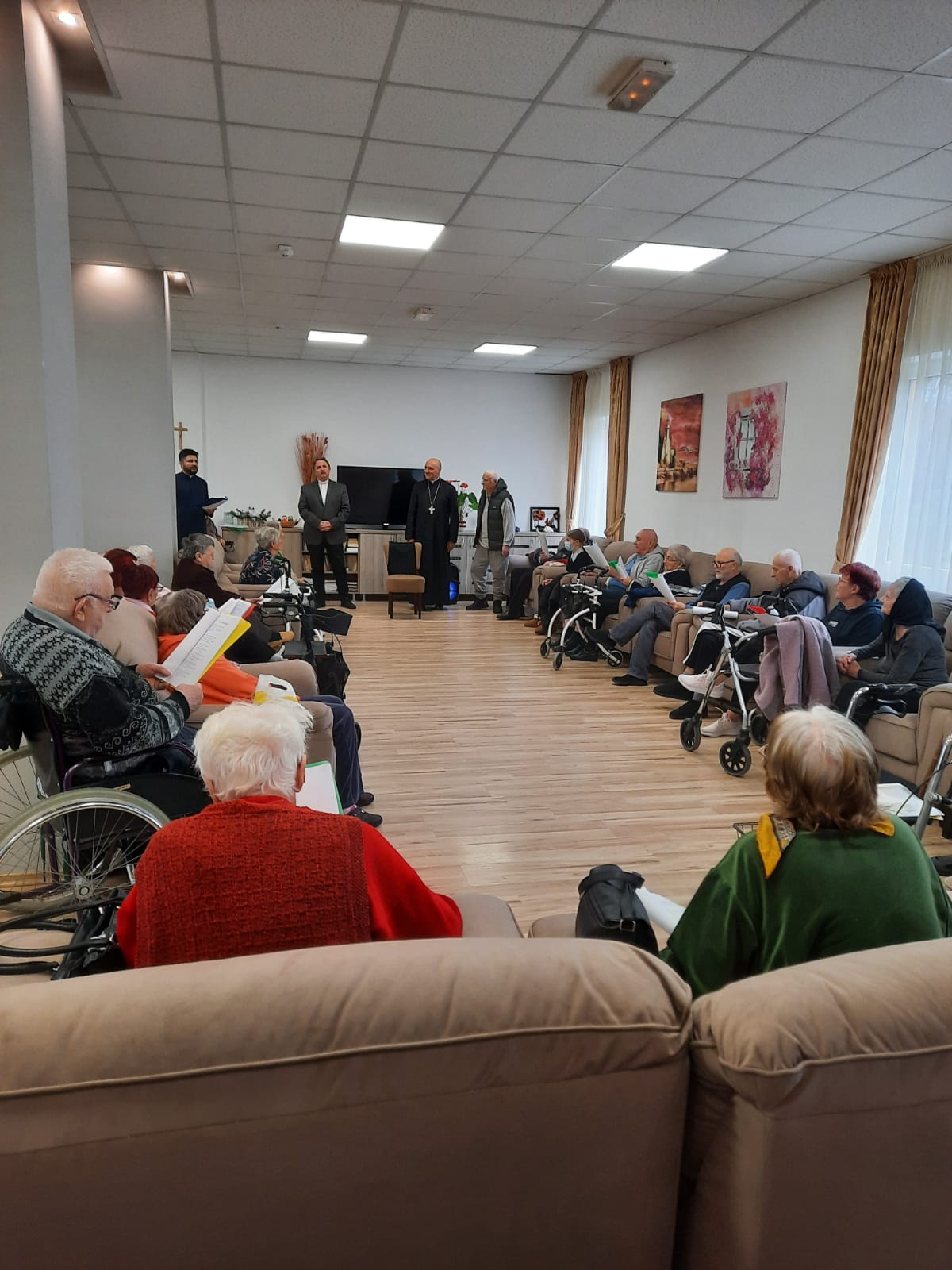 Împreună cu părintele capelan Valentin Ilea și asistentul social principal Rebeca Cenan, rezidenții l-au colindat pe Preasfinția Sa, Episcopul greco-catolic de Oradea, Virgil Bercea, cântând cu sinceritate și din inimă. Vocile lor au umplut spațiul cu o căldură aparte, iar fiecare vers a devenit o formă de mulțumire și bucurie dăruită.